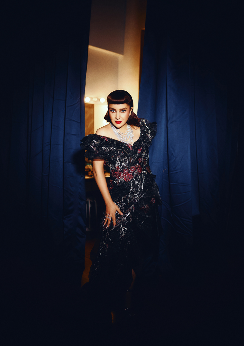 Tisca Chopra In Midnight Blossom Ruffle Gown