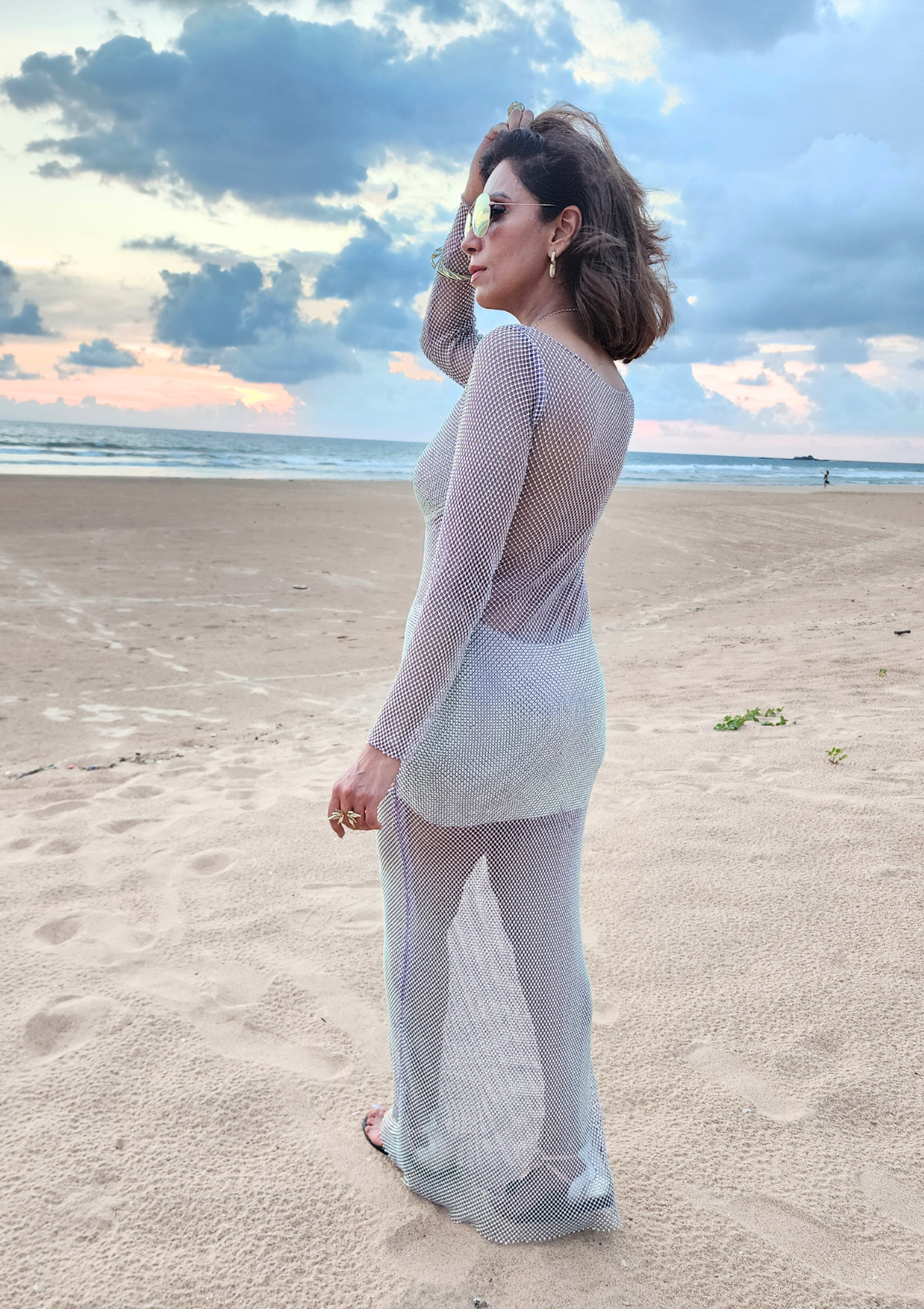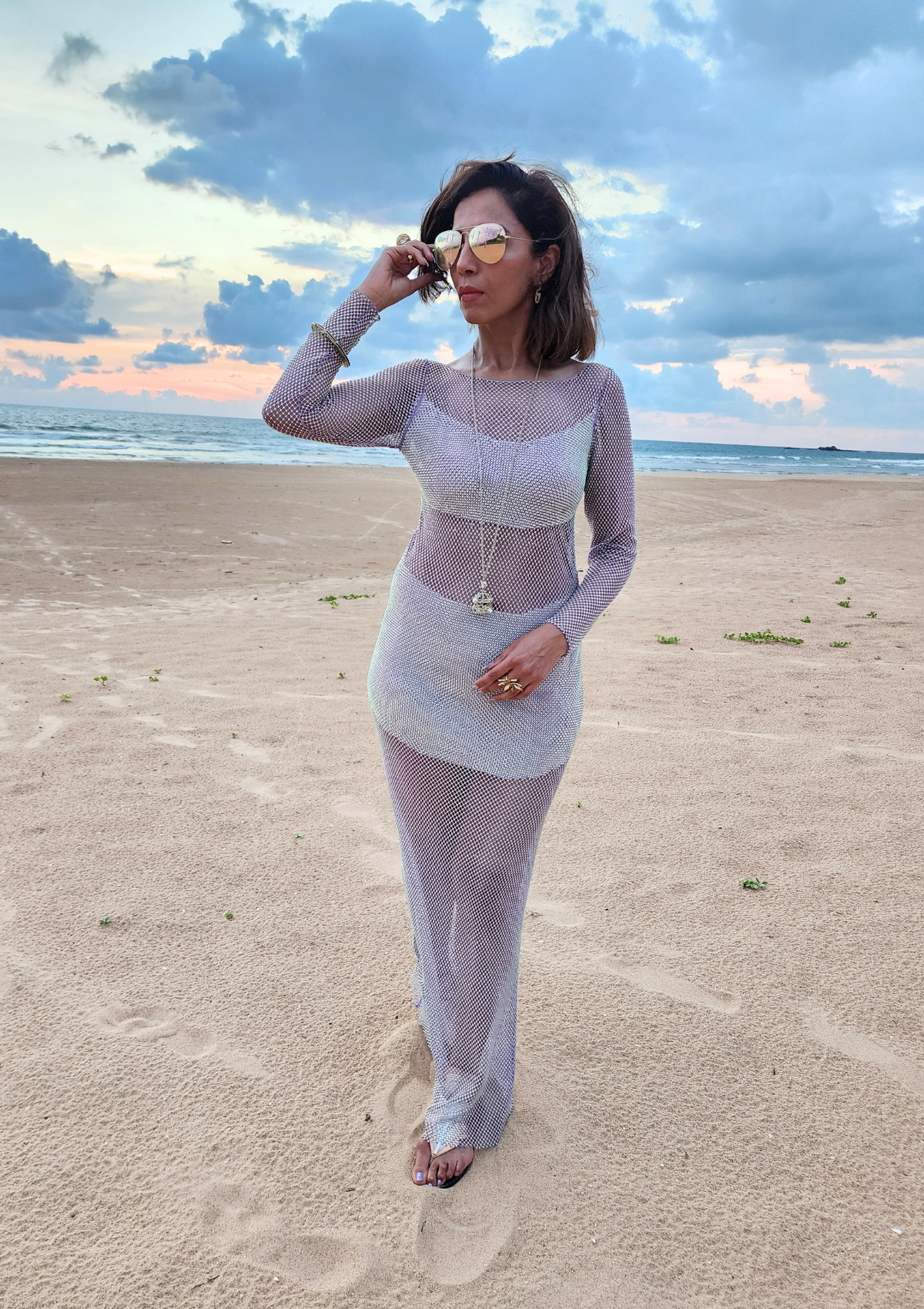 Dazzling shores to evening soirées, this versatile shimmer dress, a radiant companion for beachside rendezvous and glamorous dinner affairs alike.