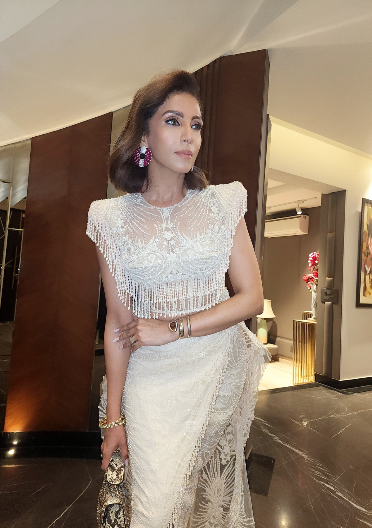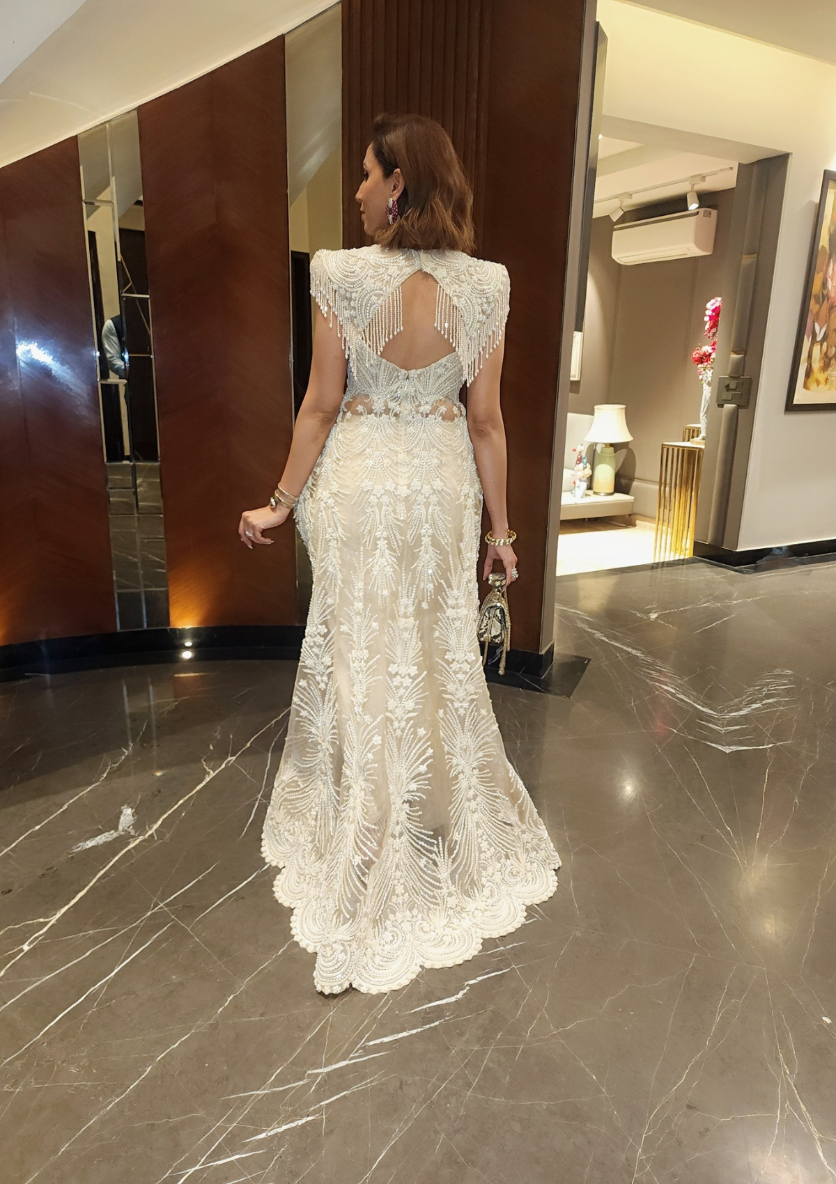 Introducing the Embellished Ivory Jacket & Skirt, a stunning modern ensemble that exudes both elegance and sophistication.