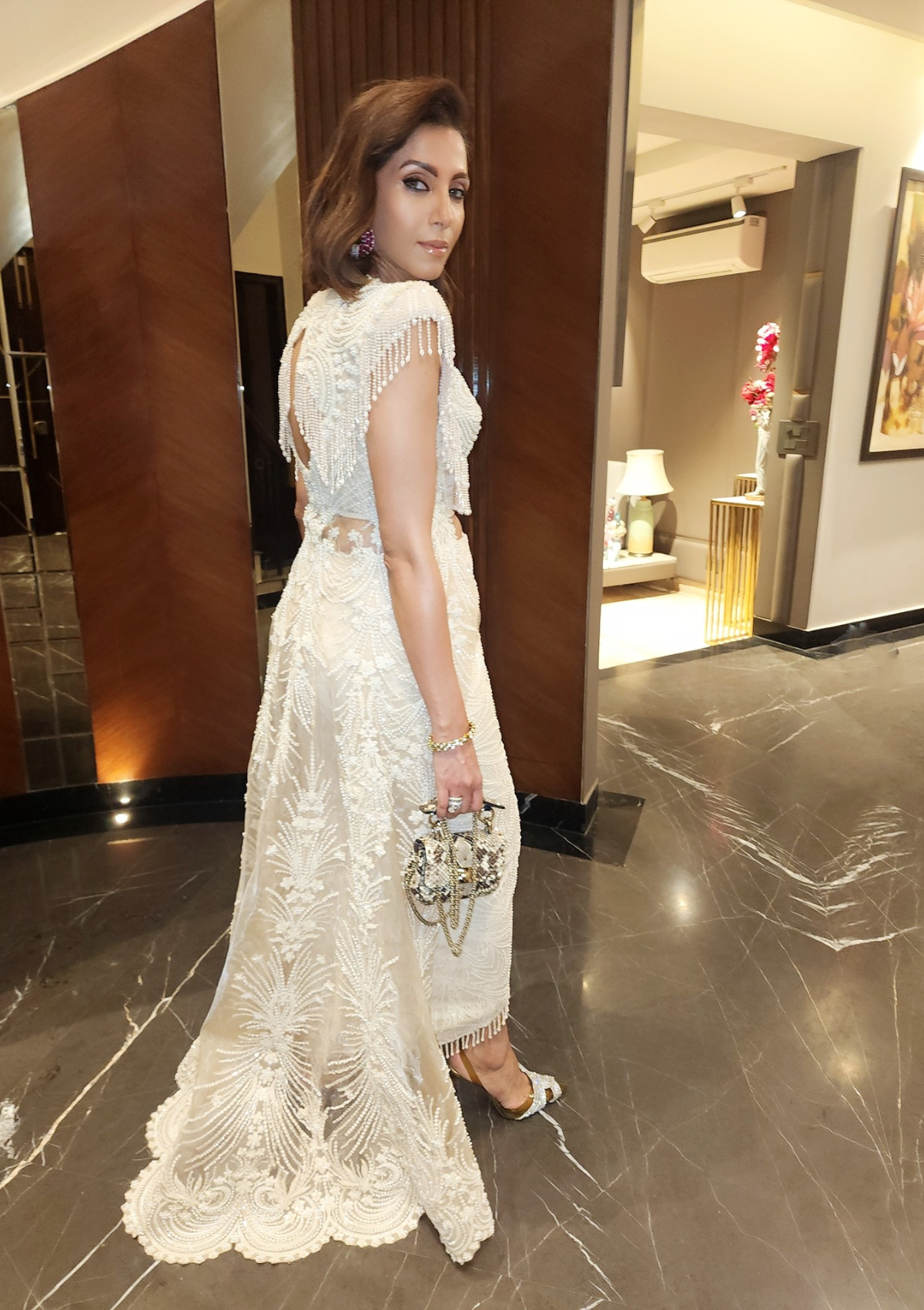 The intricate detailing adds a touch of glamour, making it an ideal choice for special occasions. Perfect for the contemporary woman, this outfit beautifully balances style and refinement.