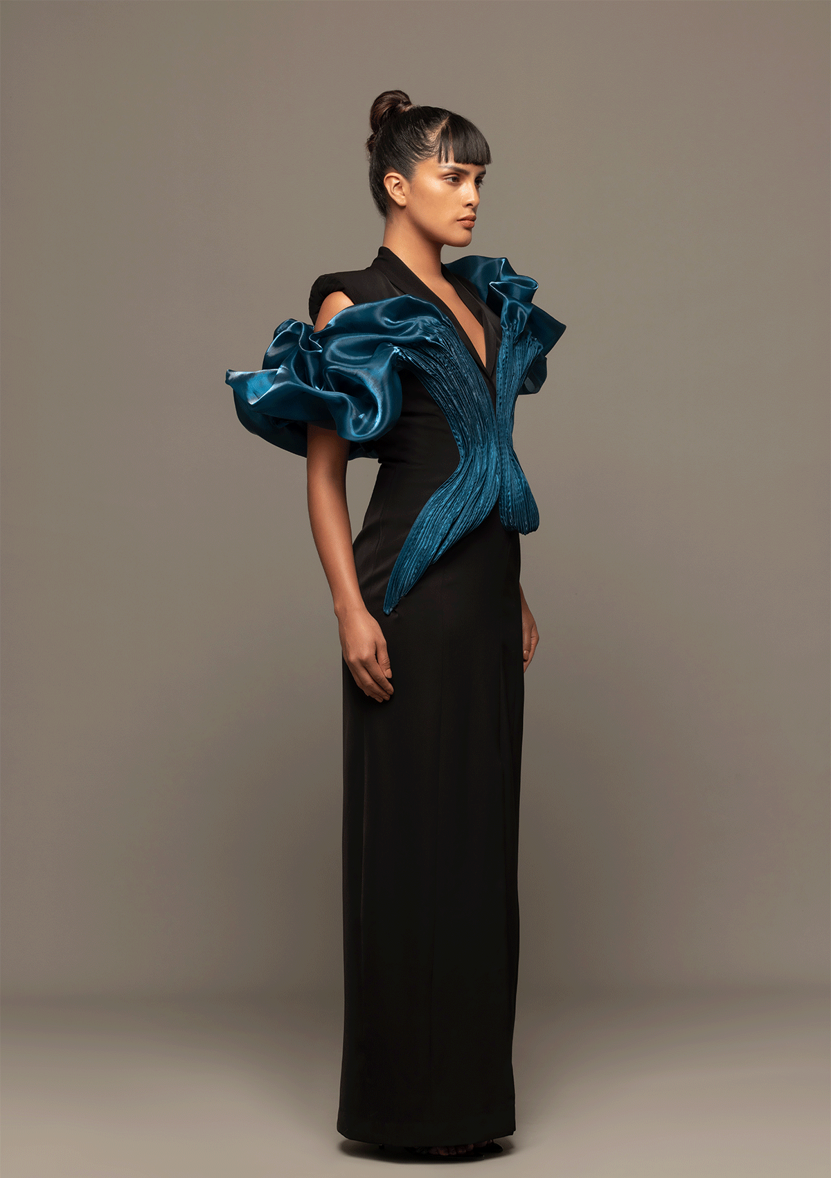 Dazzle in this extraordinary dress that commands attention with its powerful shoulders and figure-enhancing silhouette. Embrace the allure of your curves as the smooth design accentuates your every gesture with confidence and grace. This dress effortlessly adapts from a casual evening with friends to an upscale formal event, showcasing its versatility and chic appeal. Whether adorned with striking jewellery or kept elegantly understated, this garment assures you an undeniable sense of empowerment.