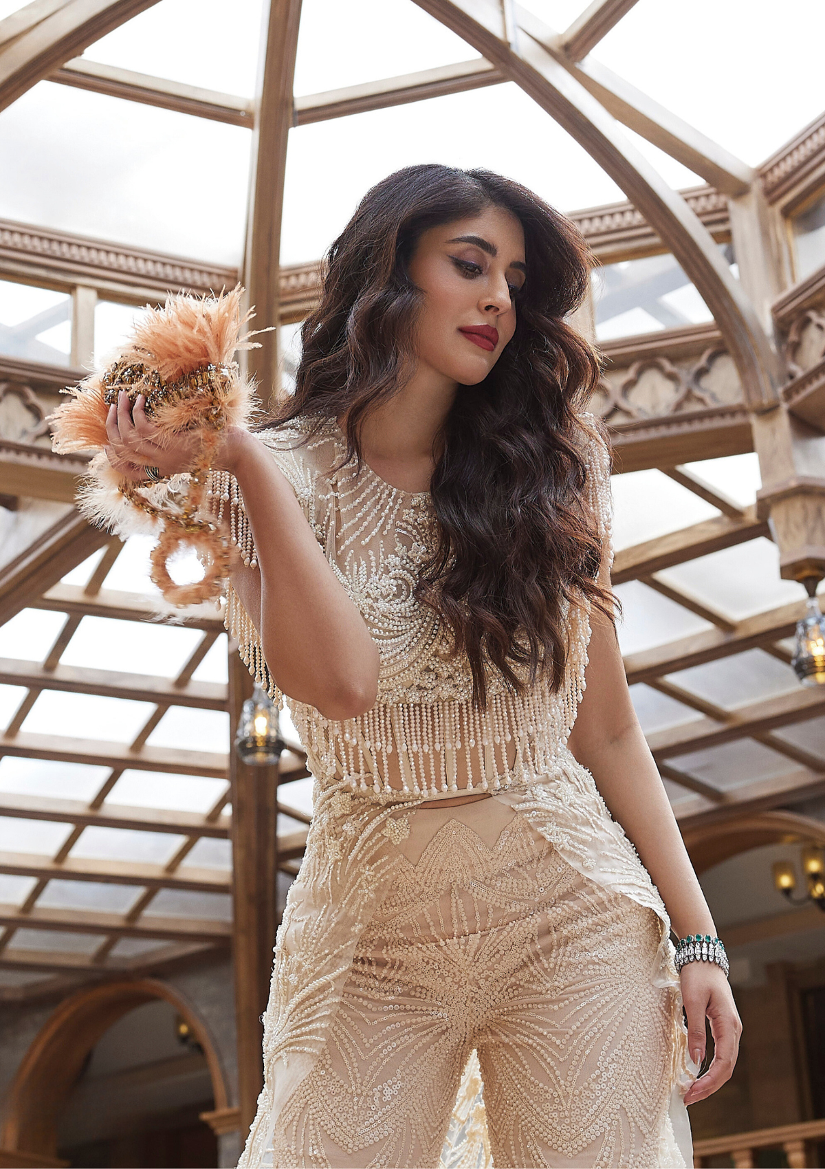 Kritika Kamra stuns in our Embellished Ivory Jacket & Pants, a modern bridal ensemble that exudes elegance and sophistication. The intricate embellishments elevate this fashion-forward choice, perfect for the contemporary bride looking to make a statement on her special day.