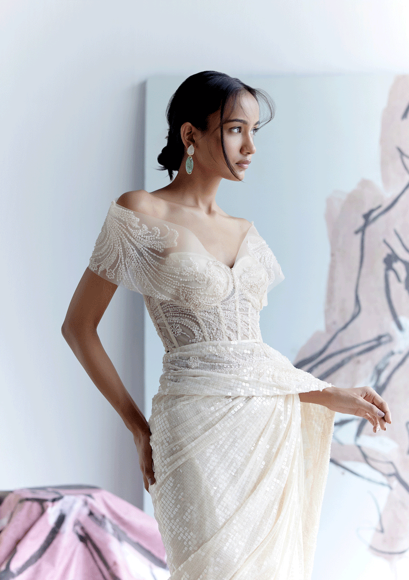 Serenity Ivory Draped Saree