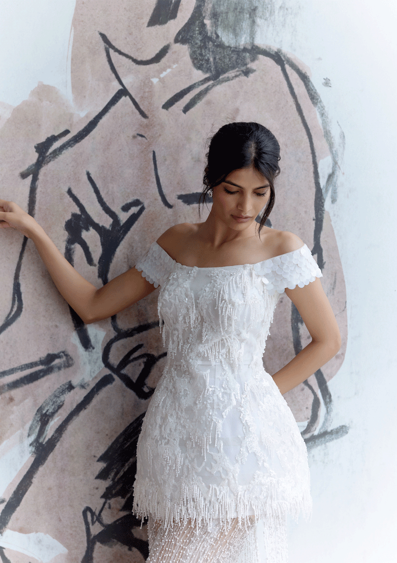 Ivory Feathered Sequin Midnight Dress