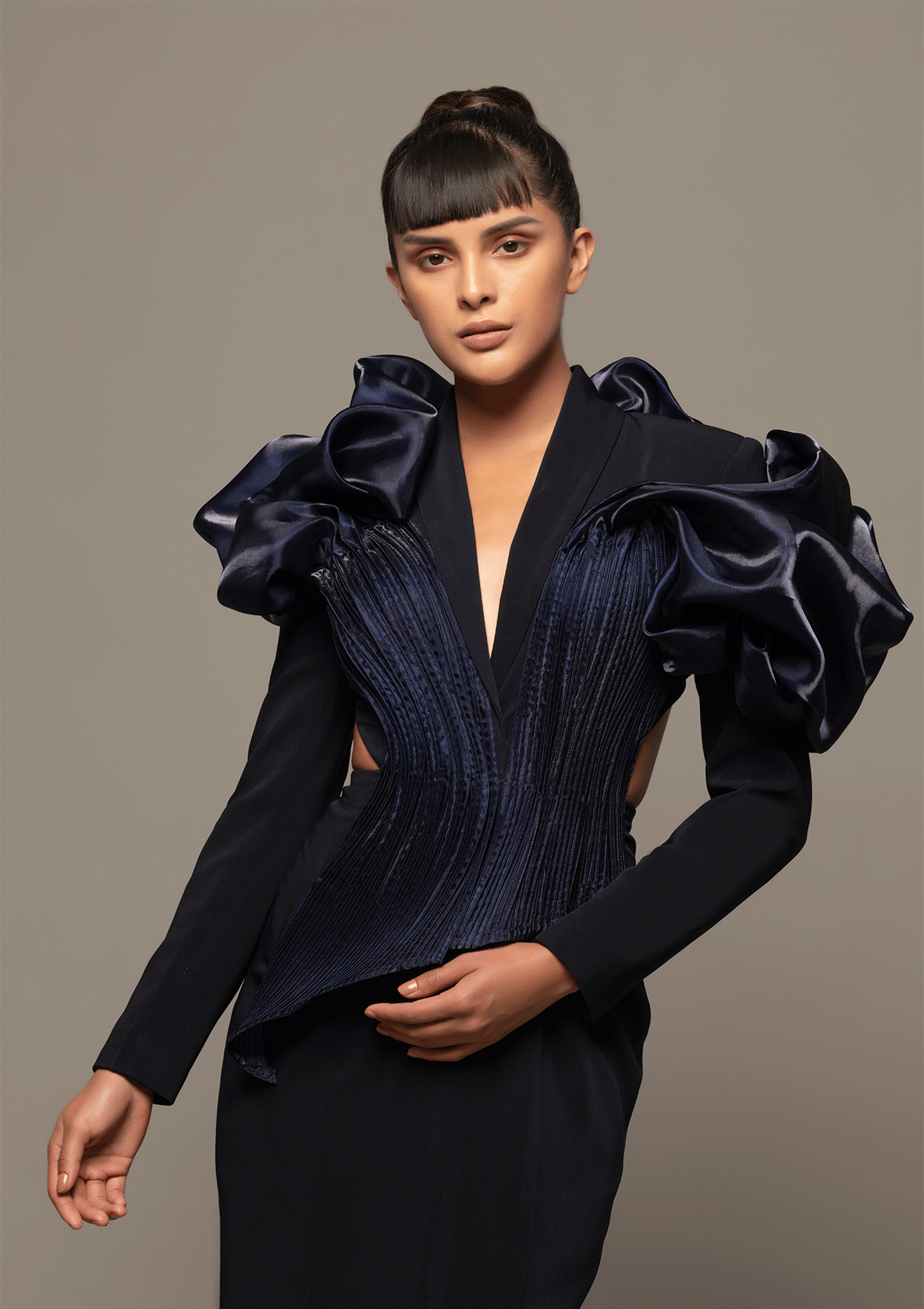 Divya Khossla shines in our Bold Blue Belle Gown, commanding the spotlight with powerful shoulders and a figure-enhancing silhouette. Embrace confidence as the sleek design accentuates every curve, transitioning seamlessly from casual outings to sophisticated affairs. Versatile and chic, this gown exudes elegance and poise for any occasion.